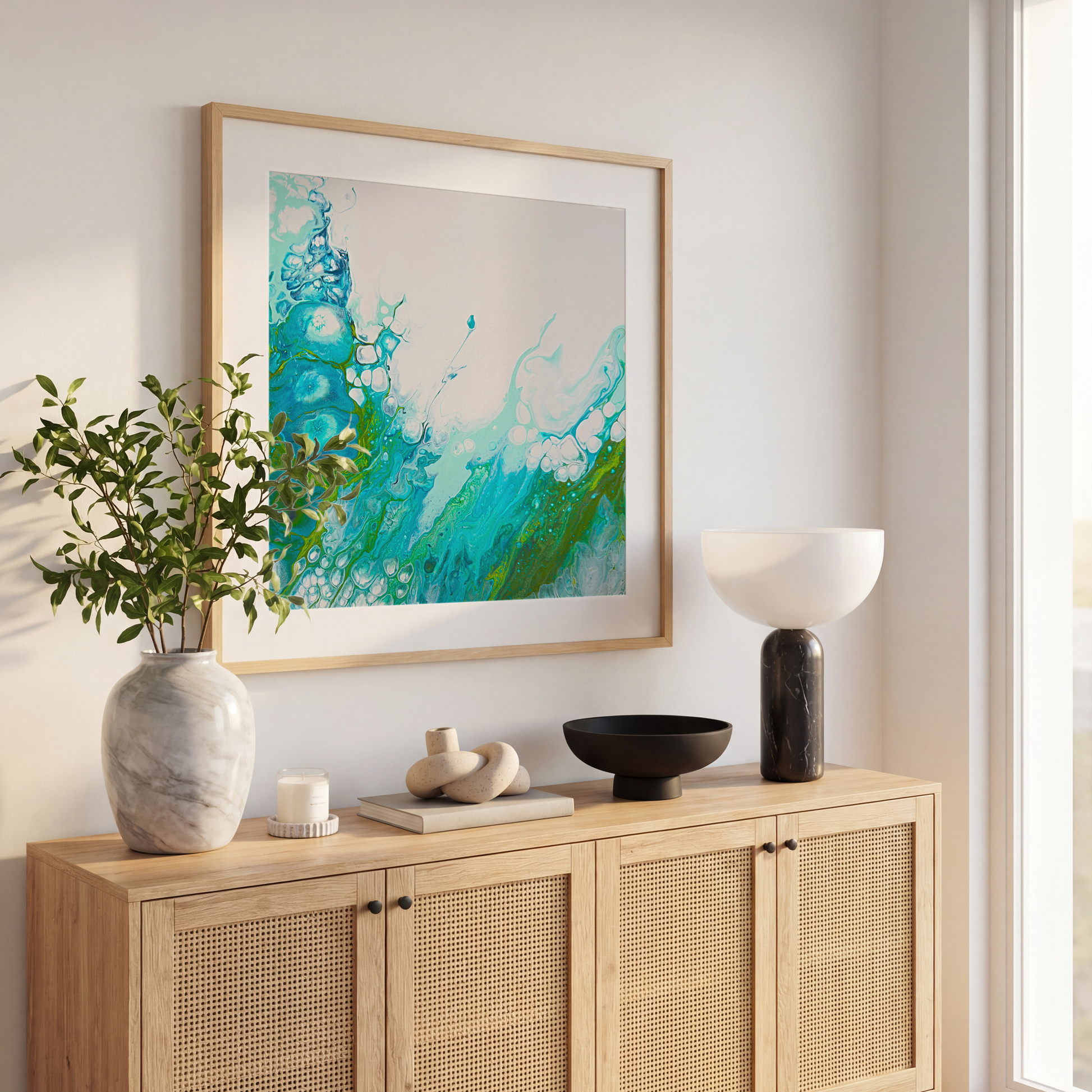 This piece transforms your space into a portal to that quiet, powerful place beneath the surface. The calm beneath the chaos. The stillness you find when you finally stop fighting and go deeper.
